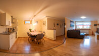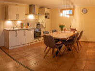 - Küchenbereich (Einbauküche komplett ausgestattet mit 4-Platten-Ceranfeld, Backrohr, Dunstabzug, Spülmaschine, Kühlschrank mit Gefrierfach, Kaffeemaschine, Toaster, Eierkocher, Mikrowelle, Wasserkocher und vieles mehr), Esstisch mit Eckbank und Stühlen
